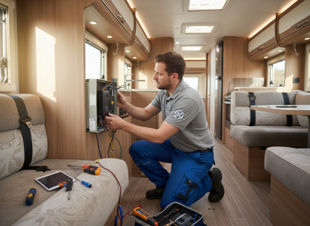 We operate as a carbon neutral business by reducing unnecessary travel wherever possible. Because we’re fully mobile, we come to you—at home, in storage, or on-site—so customers don’t need to tow or drive their caravan or motorhome to a workshop. This helps cut down on avoidable journeys and lowers overall emissions linked to servicing.